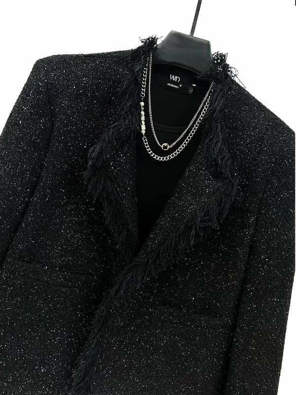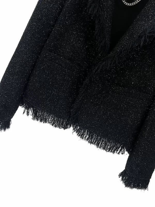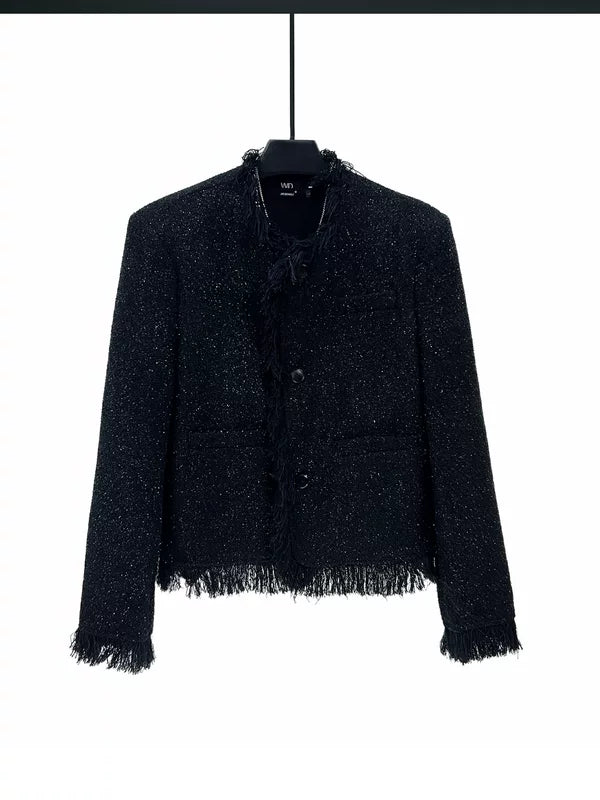 タッセルトリム付きフレイテッドツイードショートジャケット