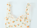 リボンストラップ付きフルーツプリントポプリンサンドレス