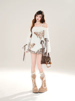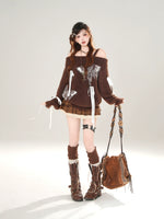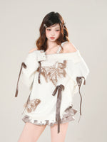 オフショルダー フワフワ バタフライ セーター プルオーバー