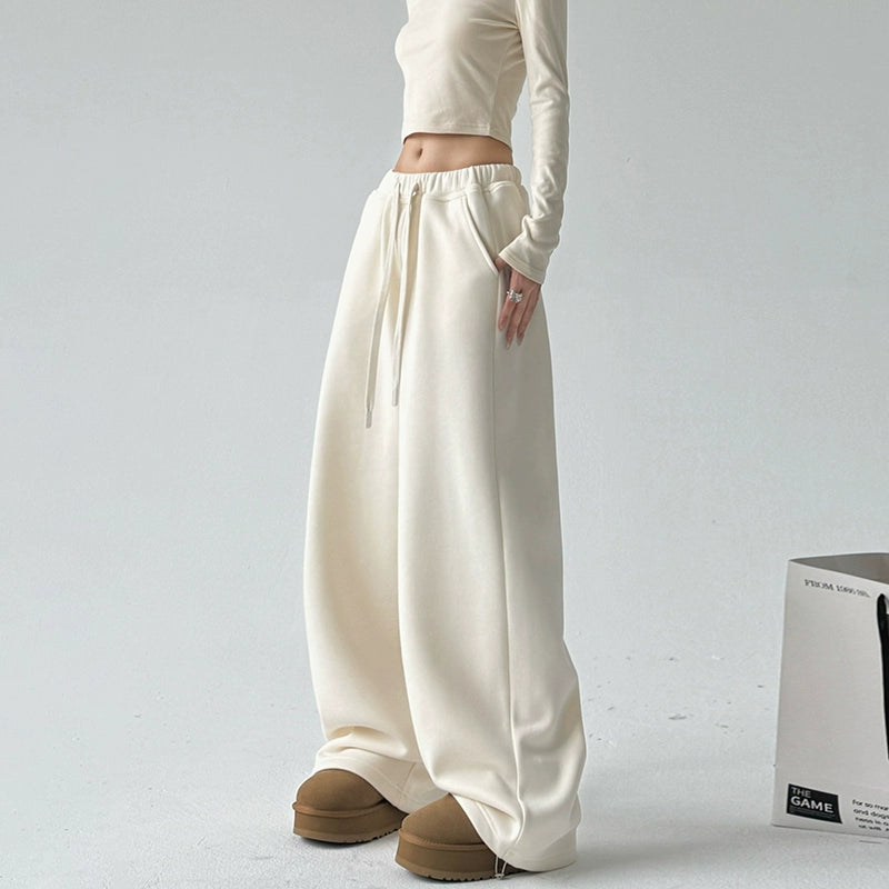 プラッシュ厚手ワイドレッグカジュアルスウェットパンツ