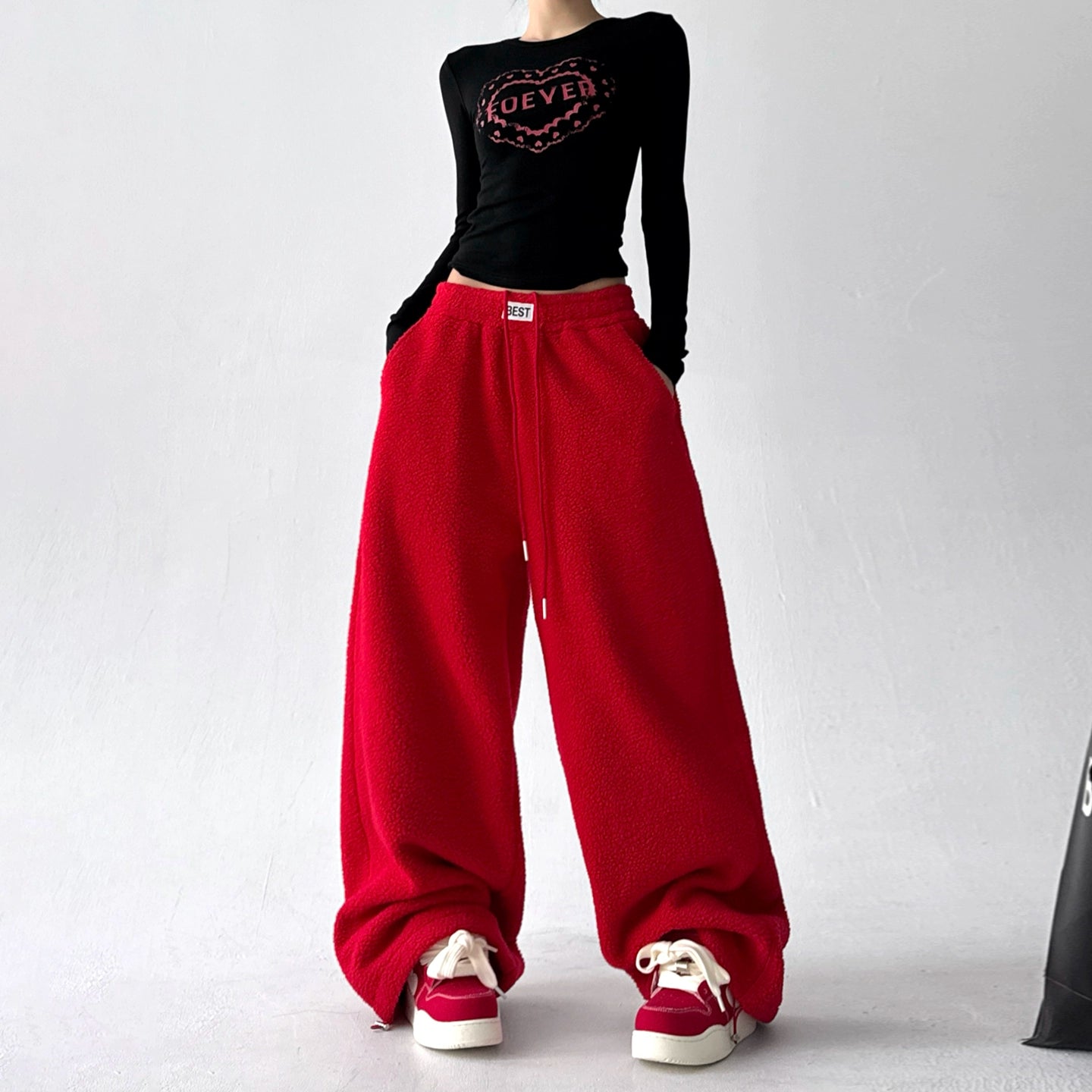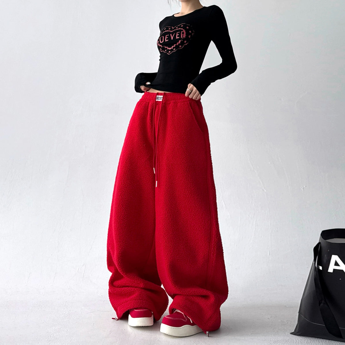 Polar Fleece Wide Leg Cuffed Pants