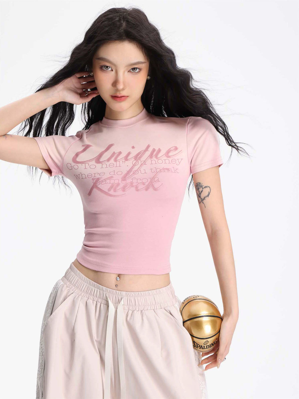 スリムフィットショートスリーブタートルネッククロップトップ