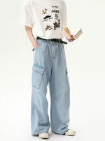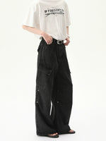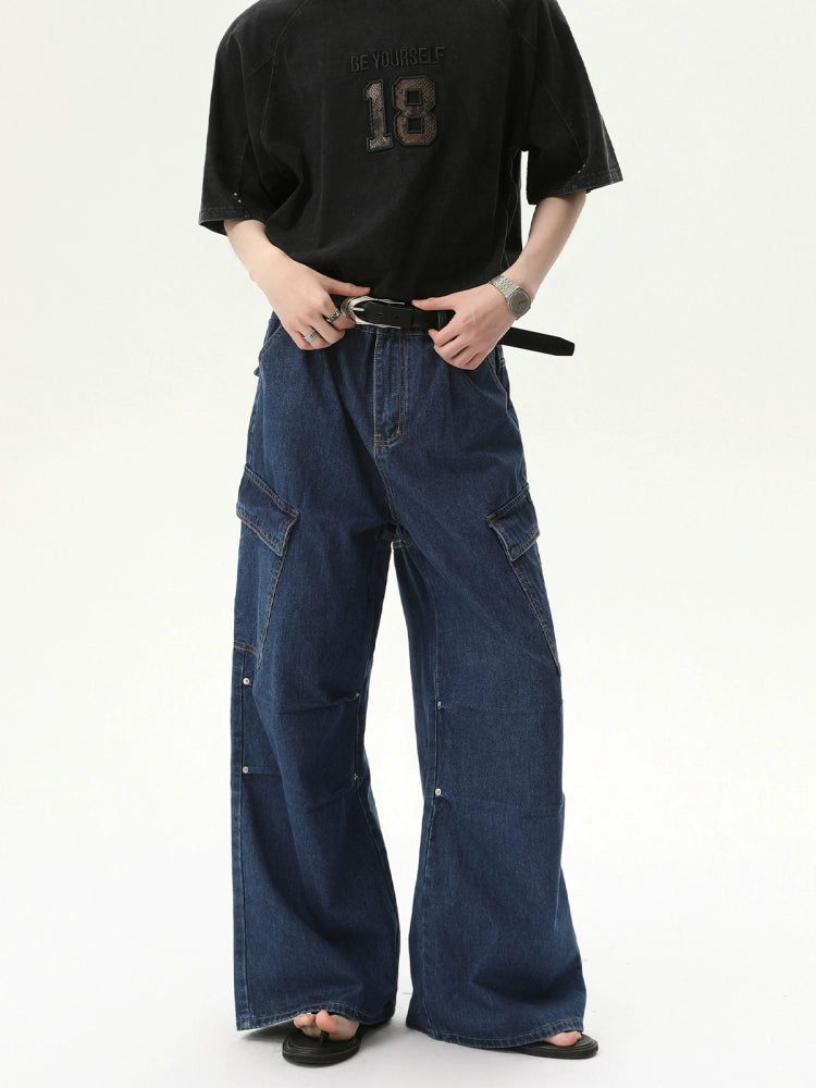 ダメージ加工プリーツリベットダブルポケットジーンズ