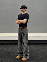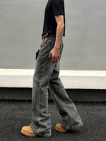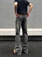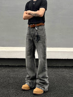 ダメージ加工されたウォッシュフレアストレートジーンズ