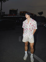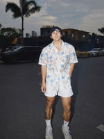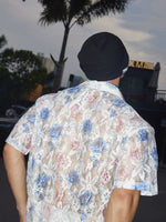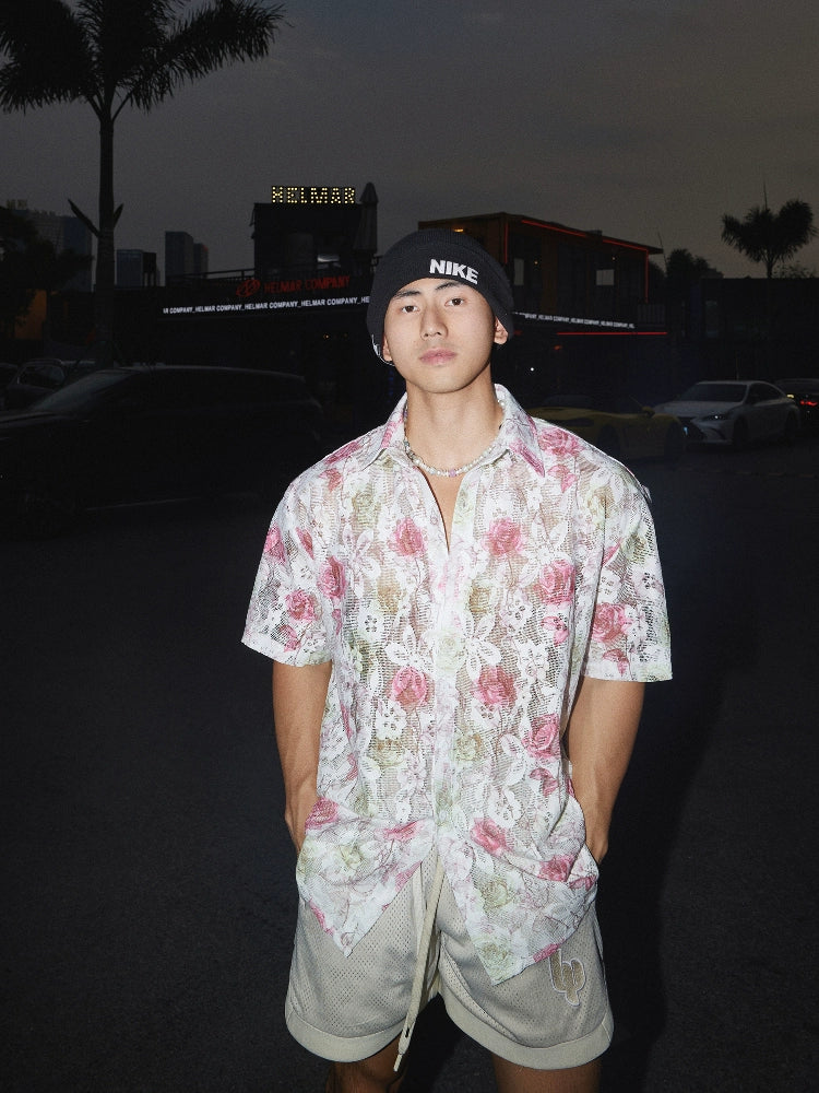 ホローフローラルレースカジュアルルーズシャツ