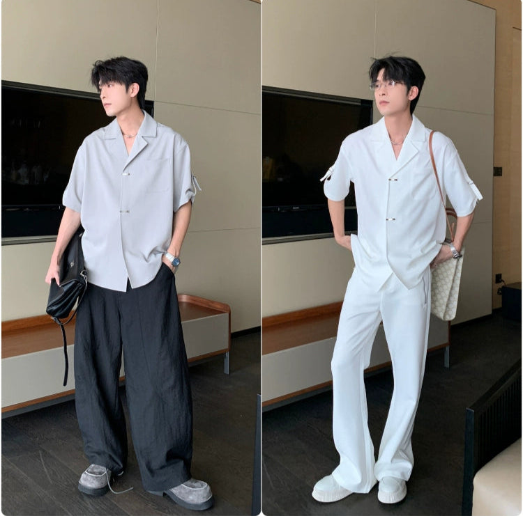 ノンアイロン キューバンカラー ルーズカジュアルシャツ