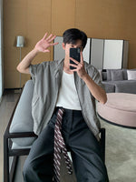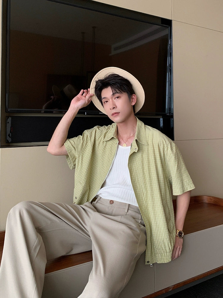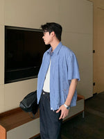 チェック柄ショートスリーブラペルカジュアルシャツ