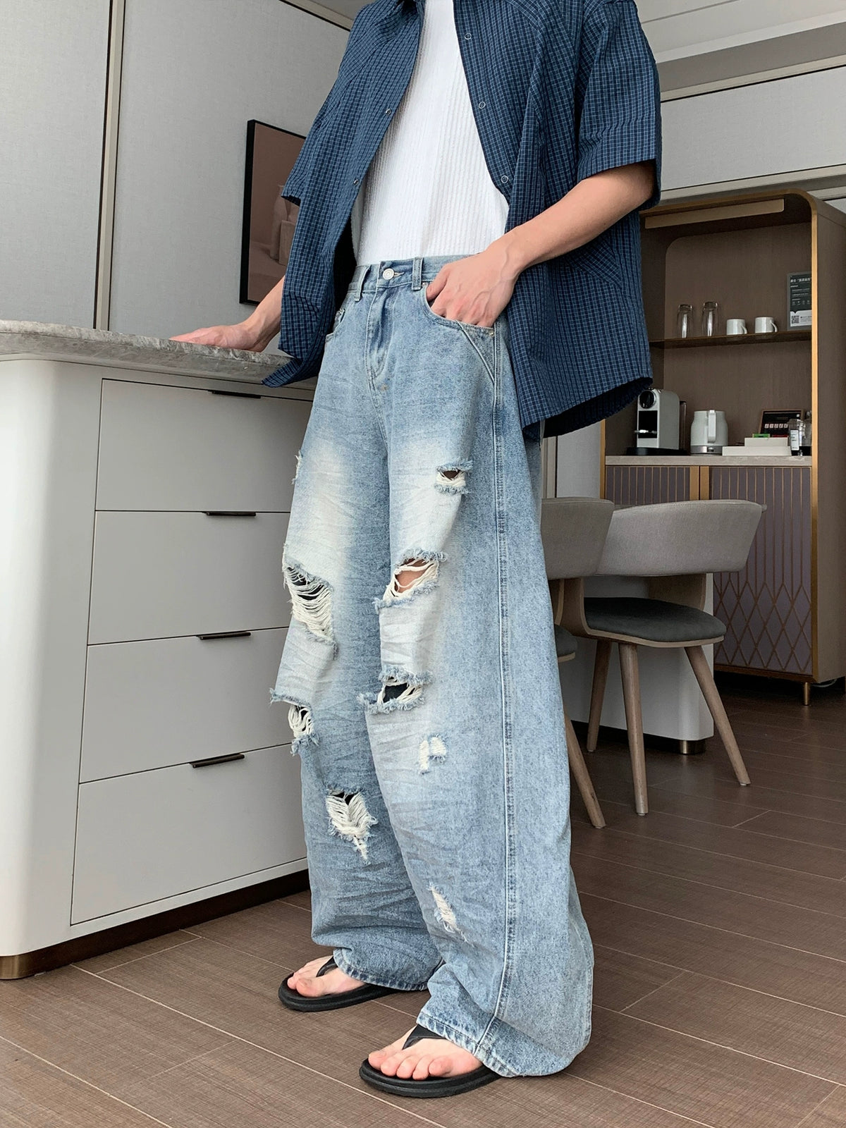 リップドルーズフィットワイドレッグジーンズパンツ