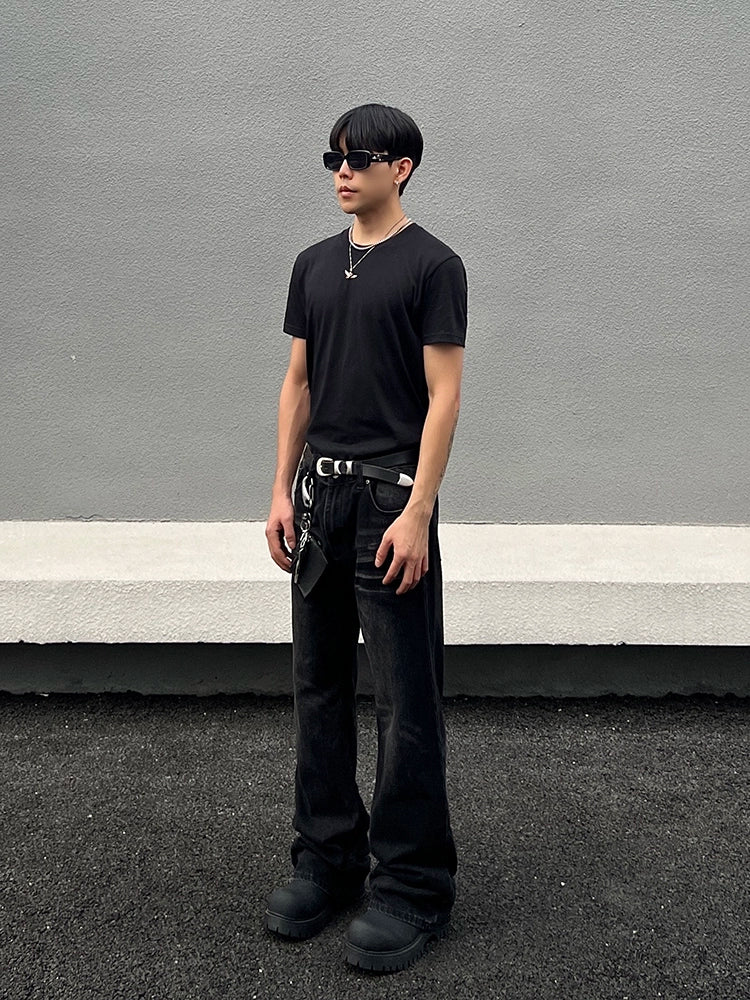 スリムストレートフレアウォッシュドジーンズ