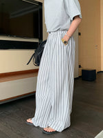 ストライプコットンワイドレッグエラスティックパンツ