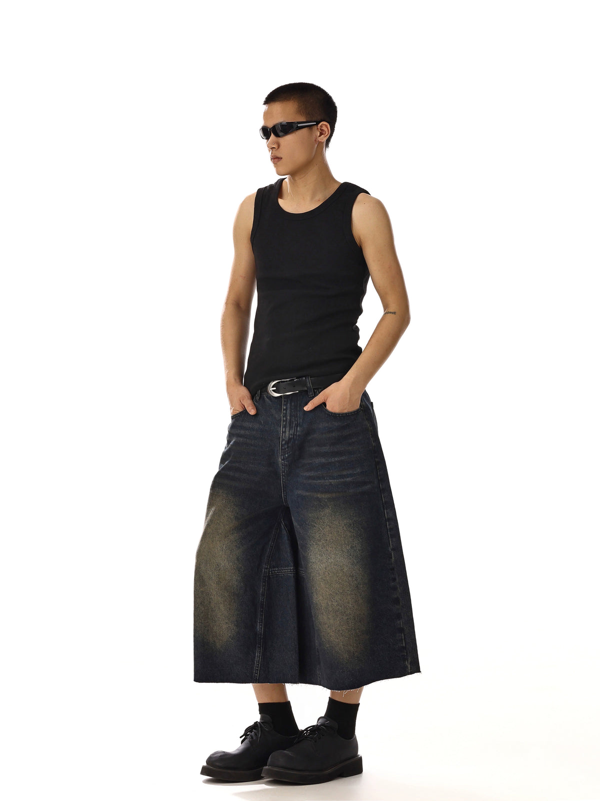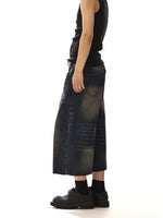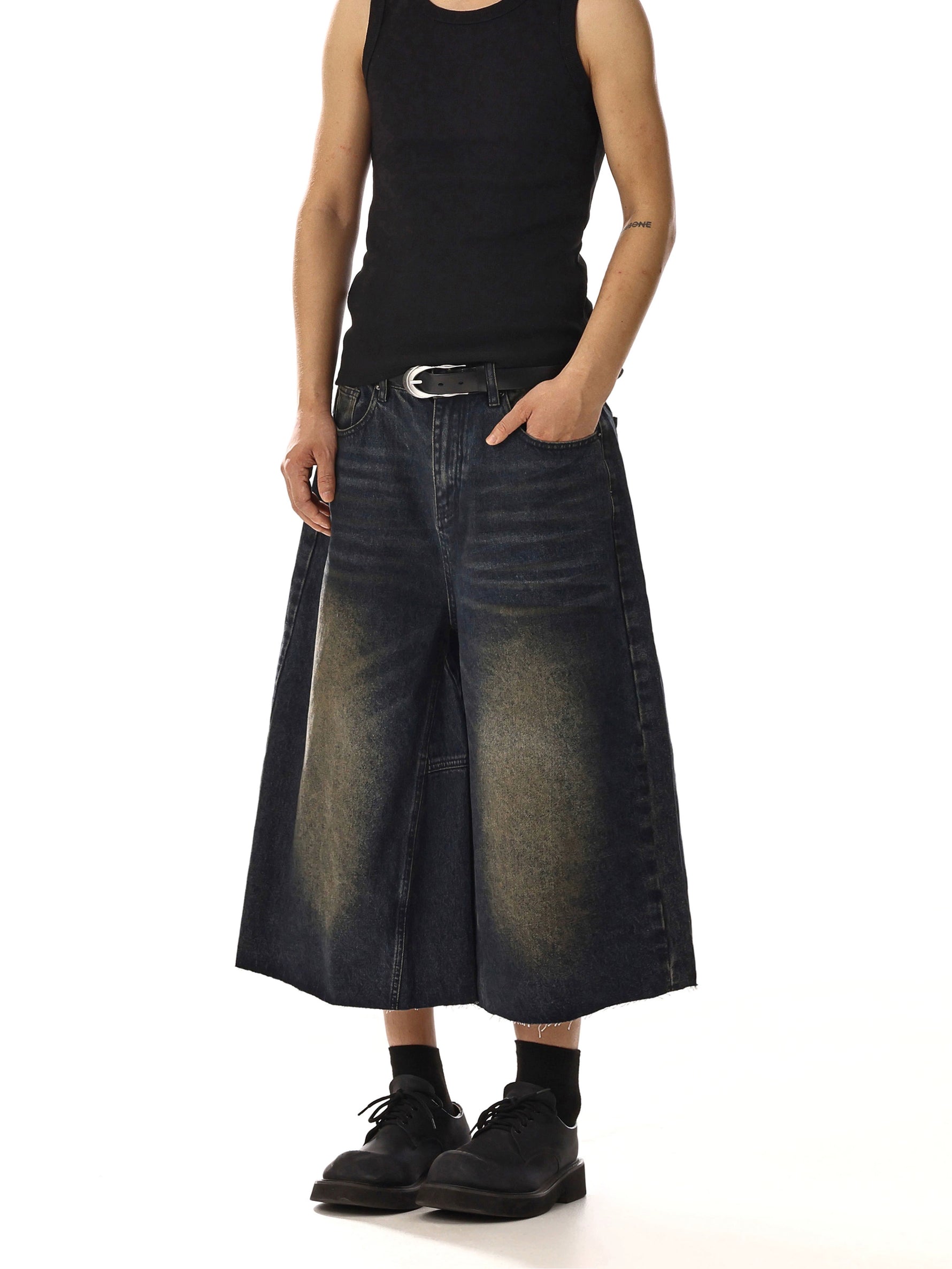 ワイドレッグカジュアルデニム七分丈パンツ