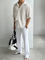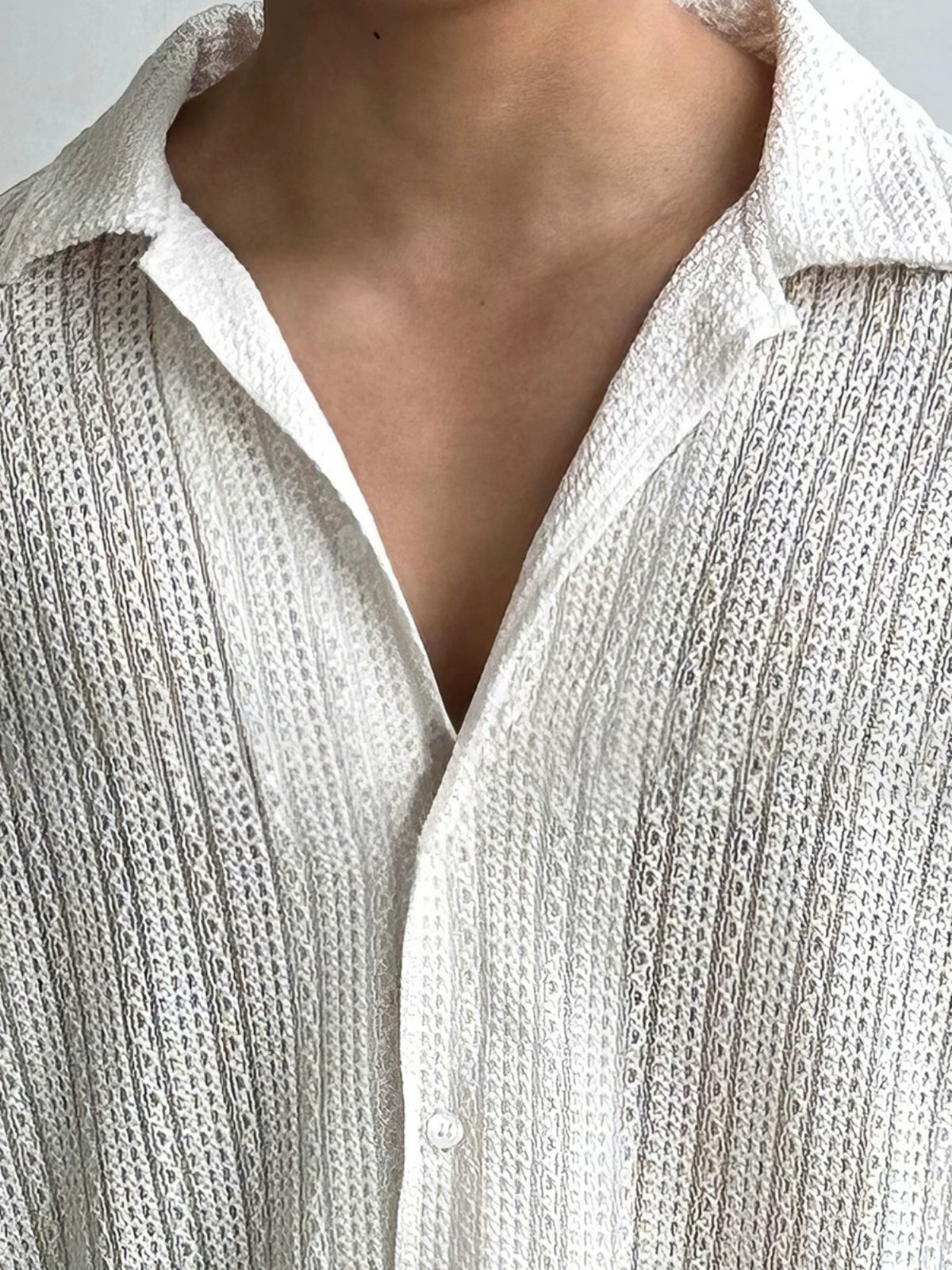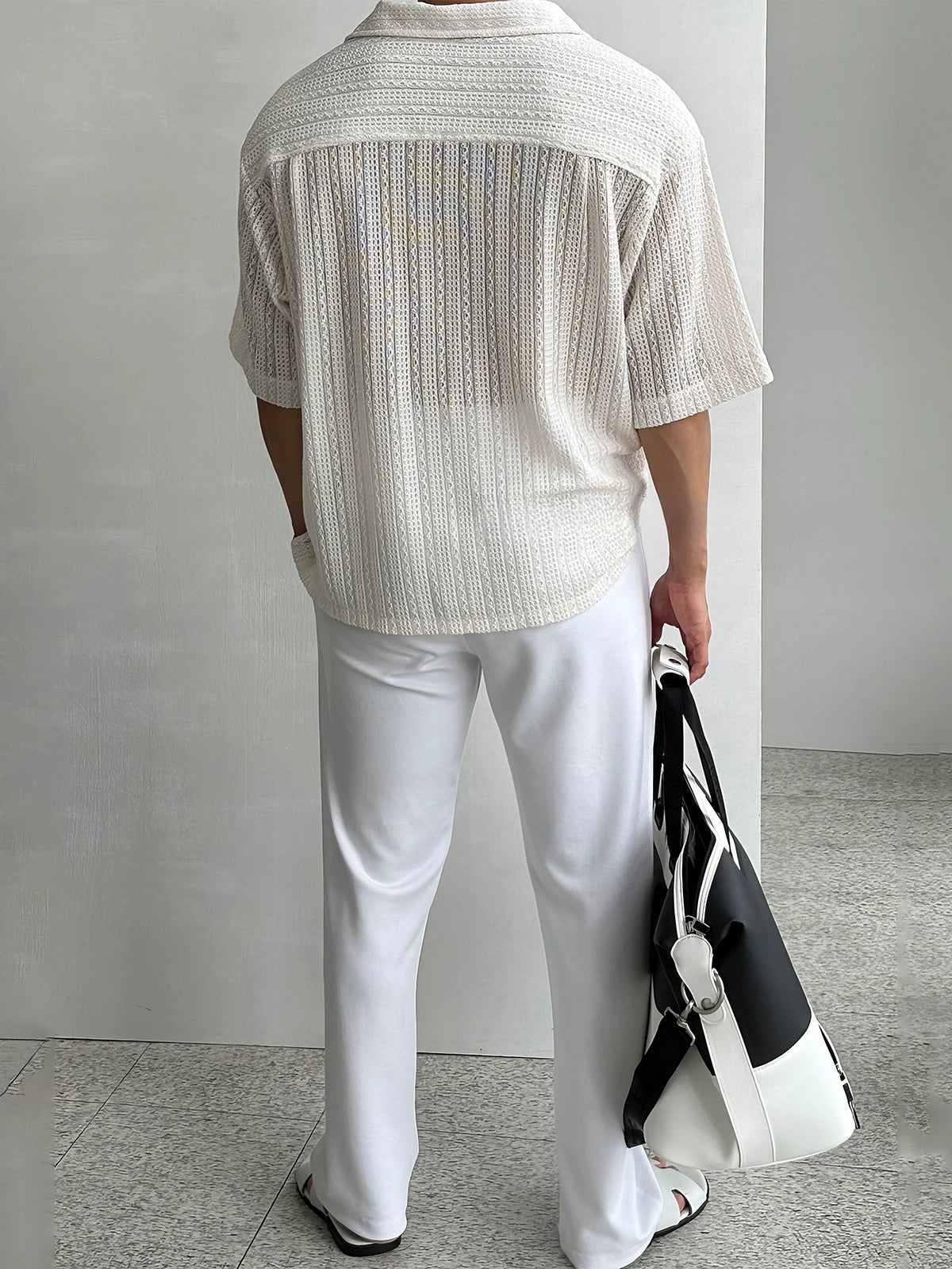 ハロウ ジャカード ニット ラペル ショートスリーブ シャツ