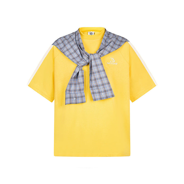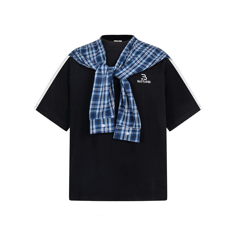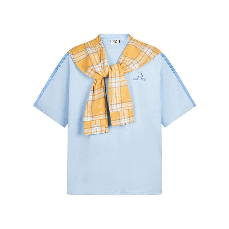 - 襟,肩ライン,袖,および裾を0.3cmで二重縫製
