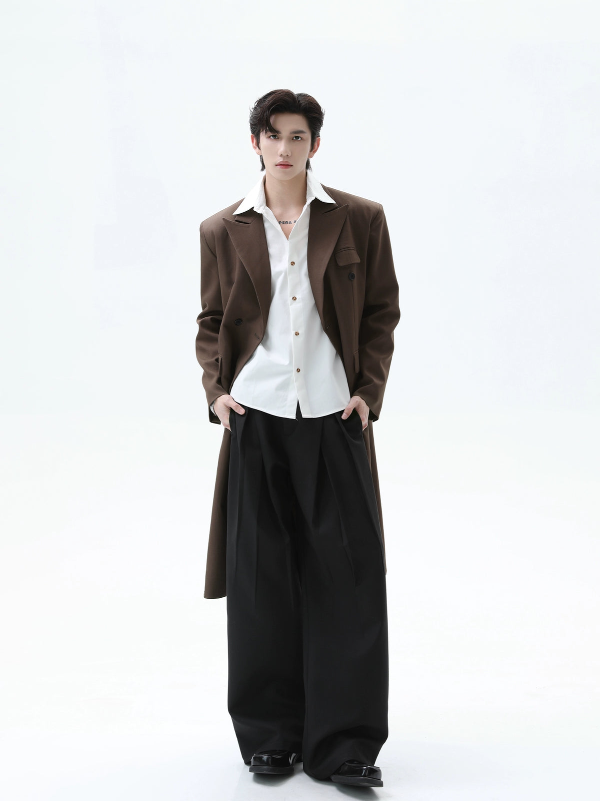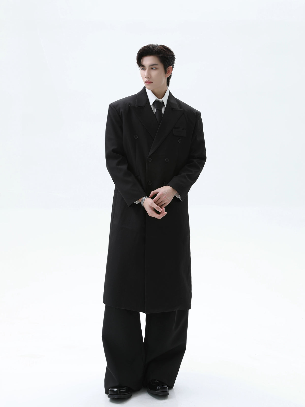 ダブルブレストのロングトレンチコート