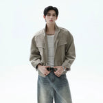 Linen Plaid Patchwork Short Collar Jacket
