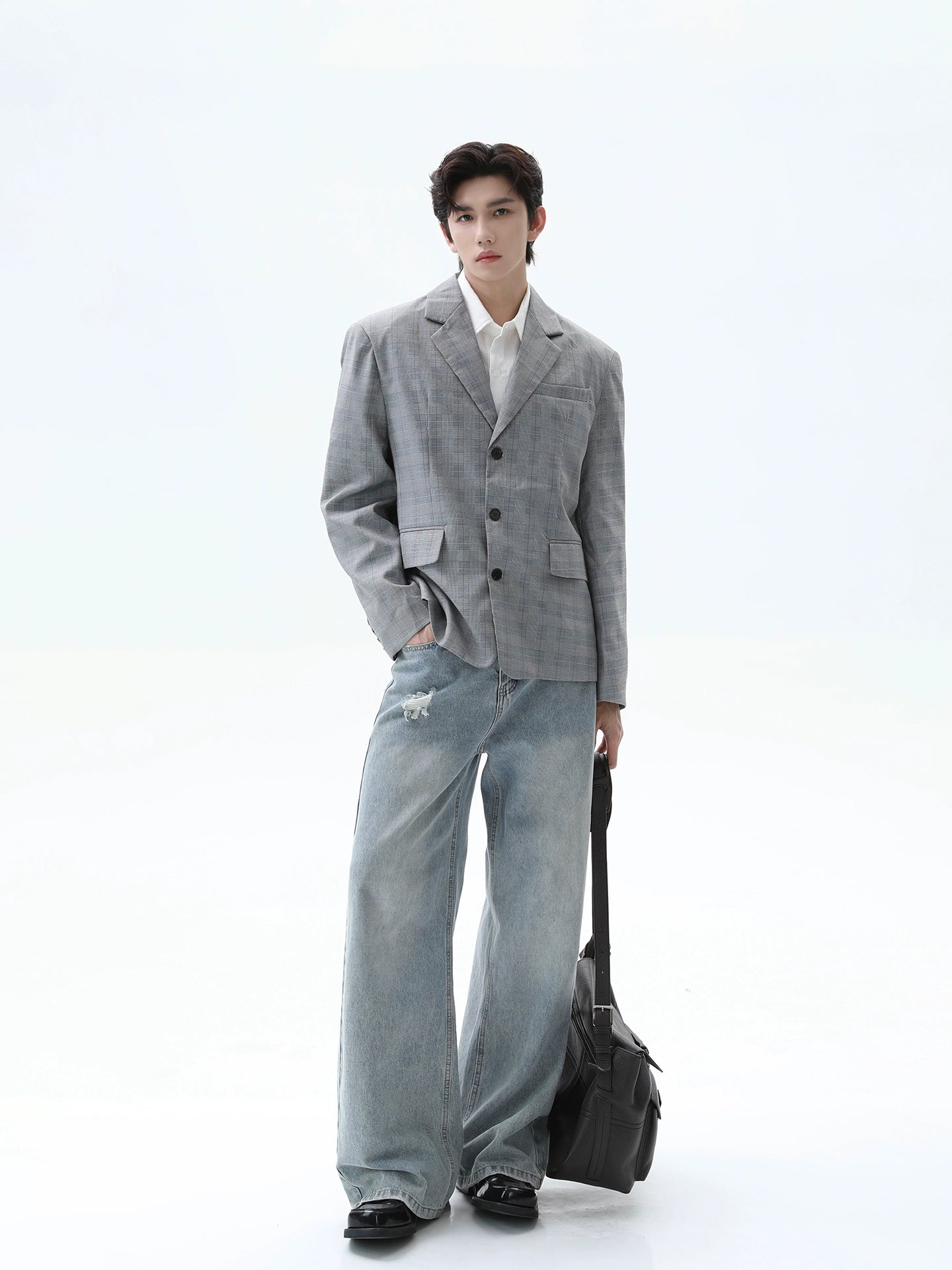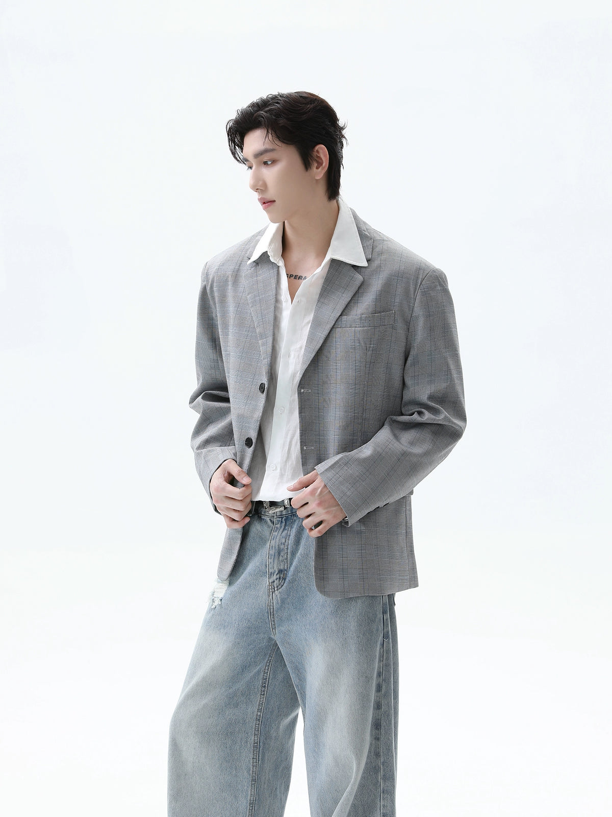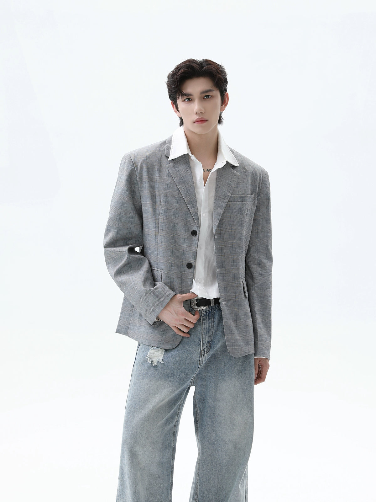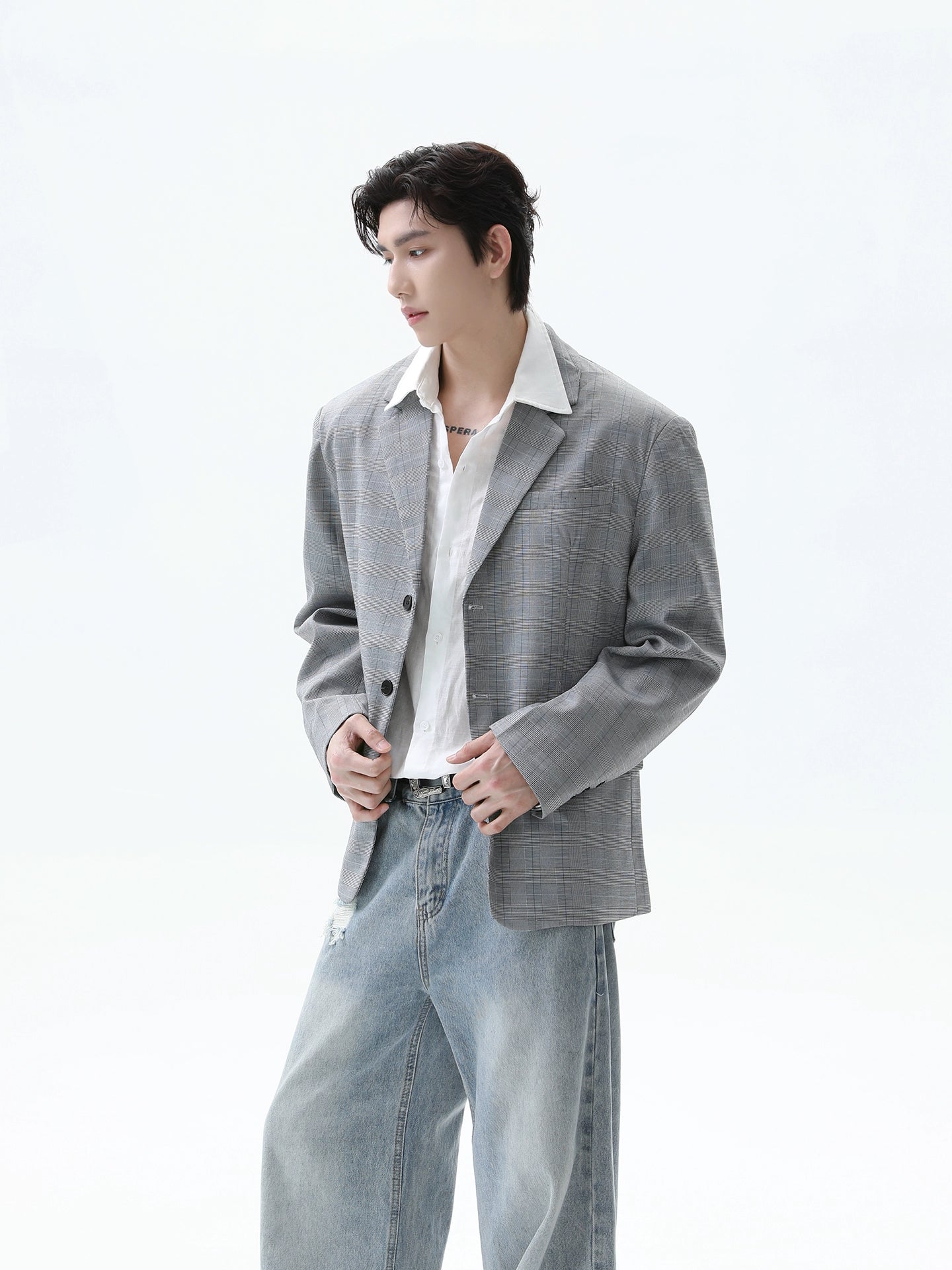 チェック柄スーツジャケット カジュアルビジネスブレザー