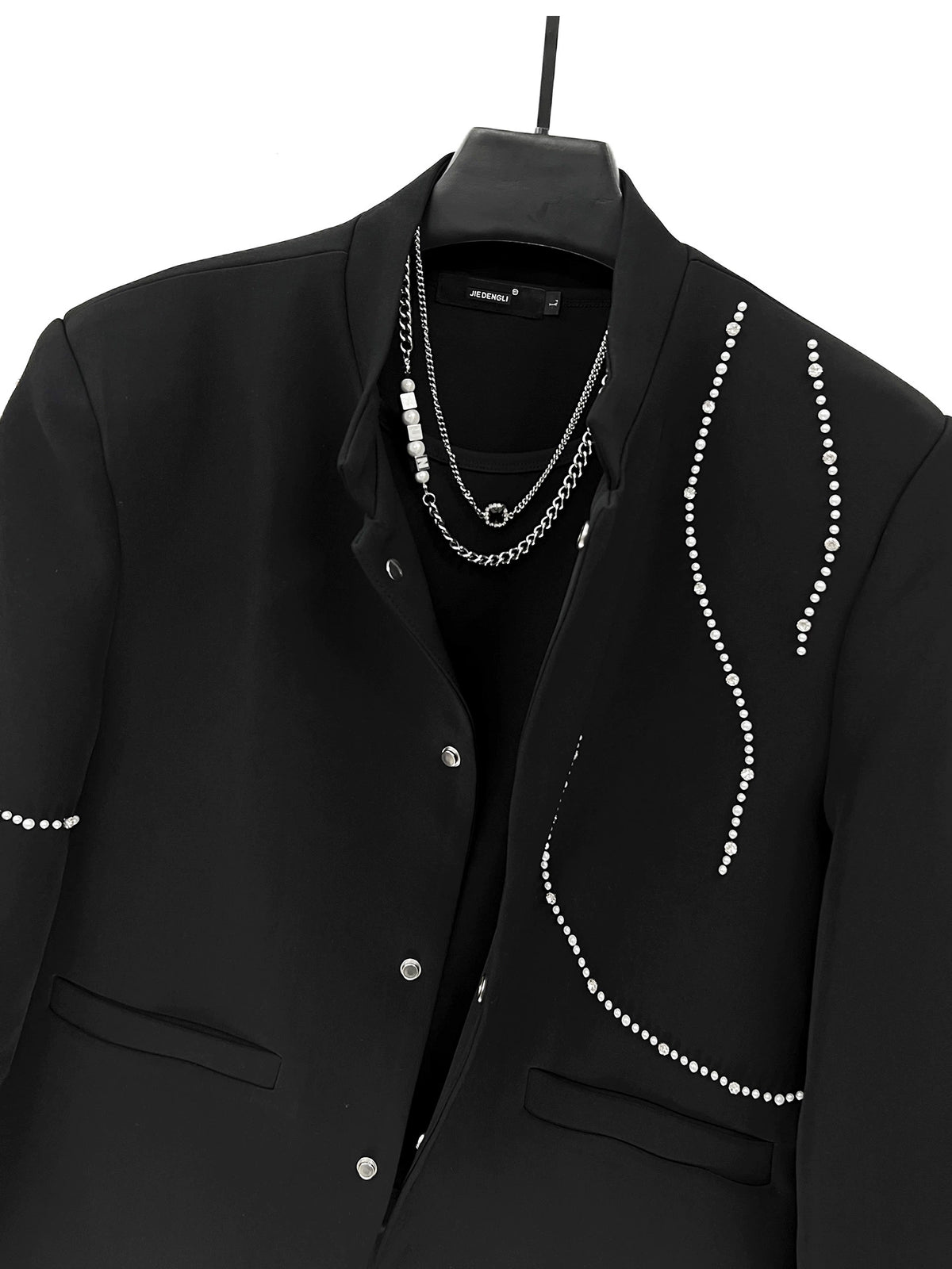 スタンドカラー ビーズ付き 中華スタイル スーツジャケット