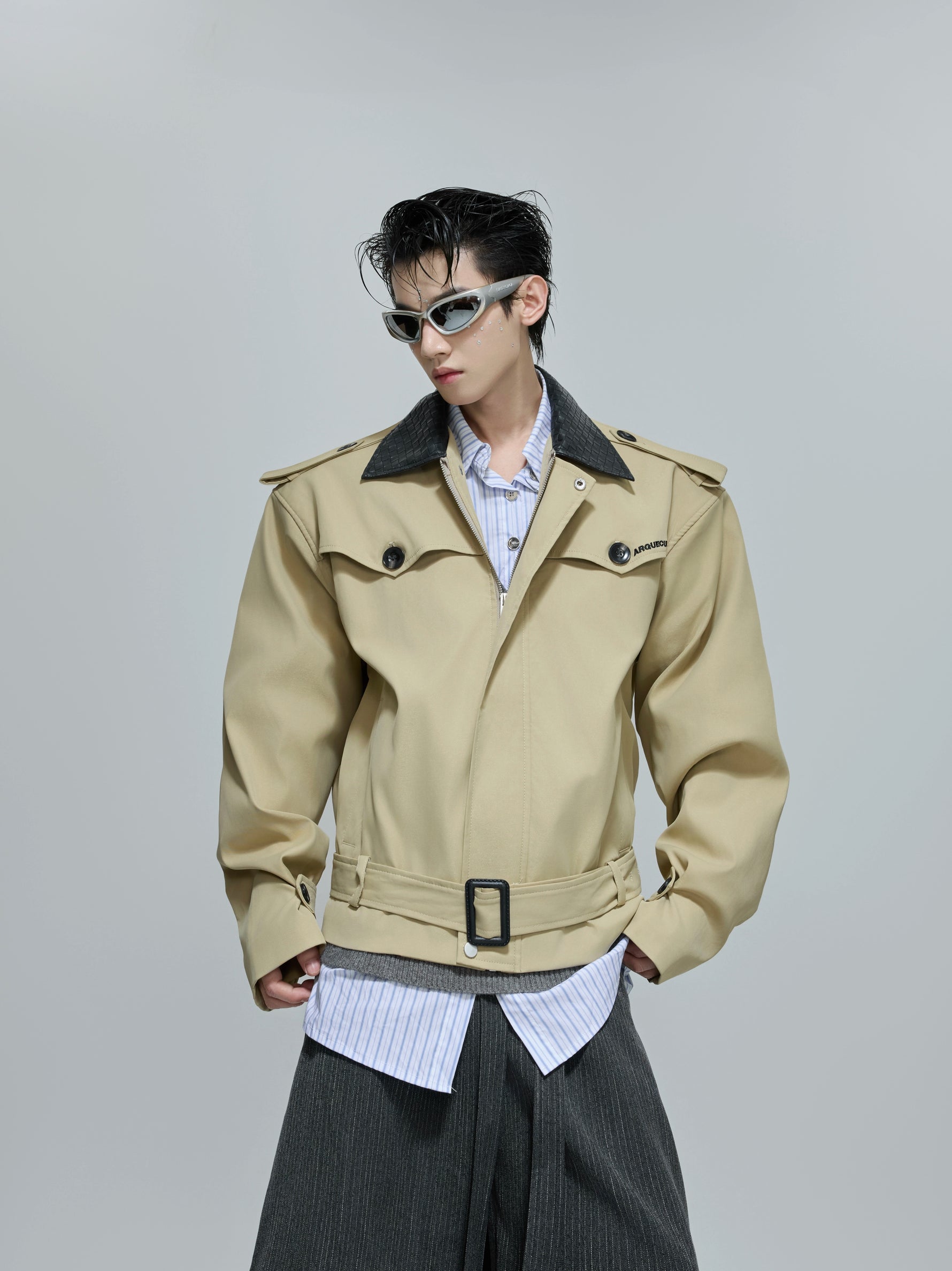織り目のコントラストステッチショートウインドブレーカージャケット