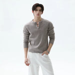 Half-Zip Ribbed Knit Stand Collar Sweater