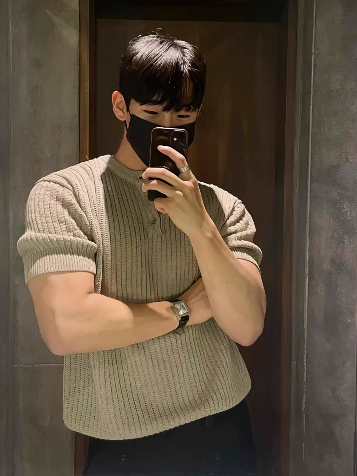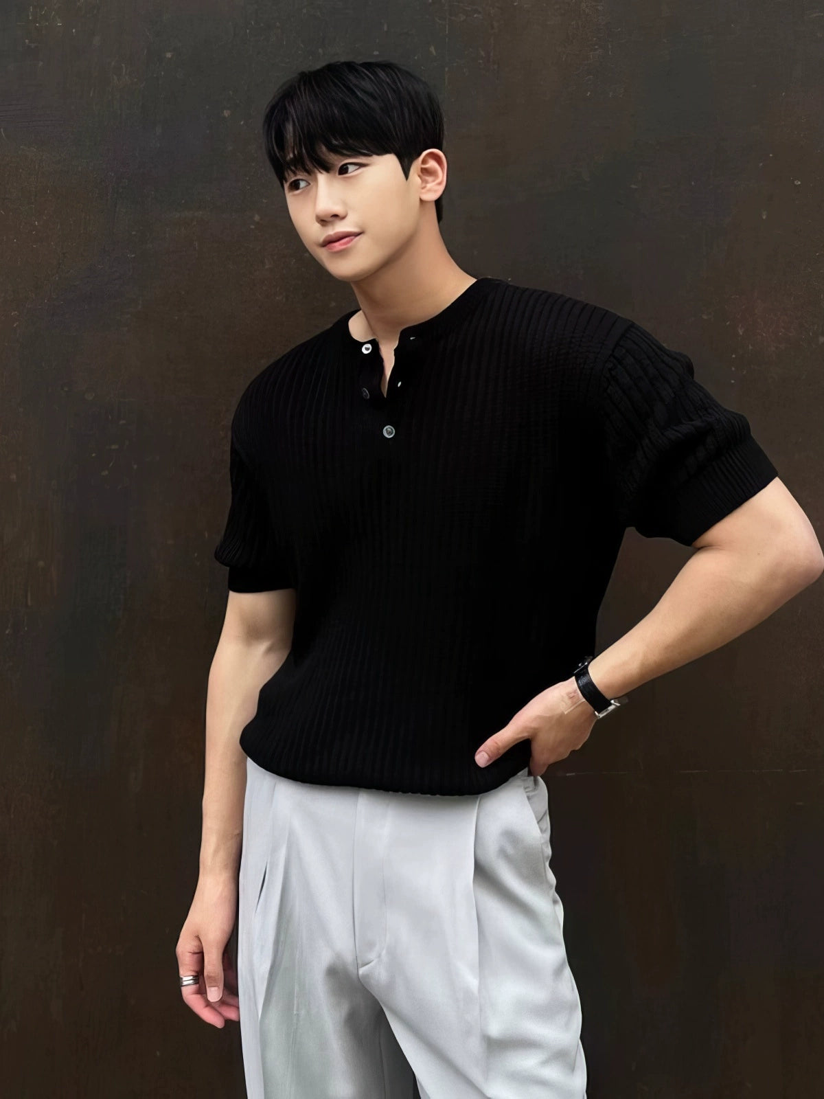 ニットヘンリーカラーショートスリーブプルオーバー