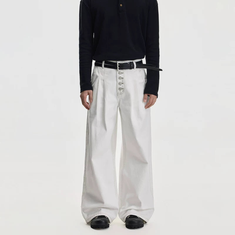 プリーツワイドレッグ五つボタンパンツ
