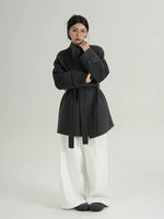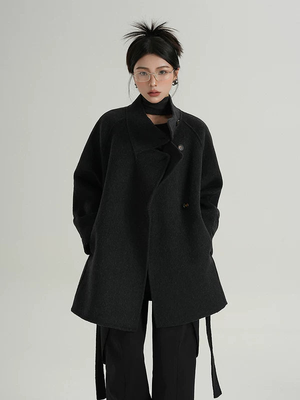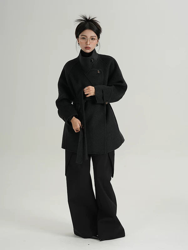 ベルト付きハイネックウールラップコート