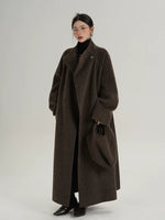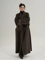 ベルト付きスタンドカラーのロングウールコート