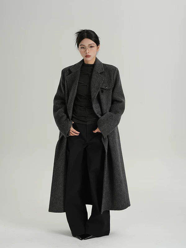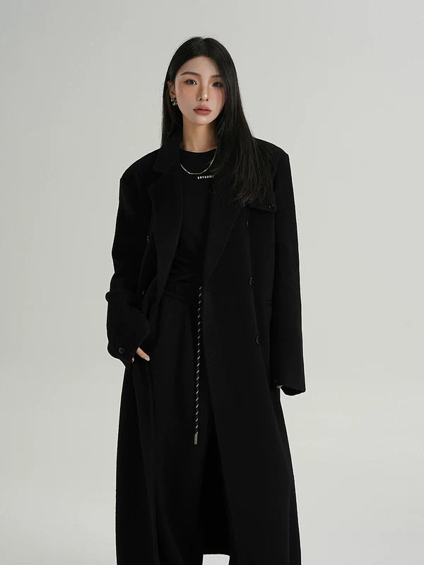 ロングダブルブレストウールカシミヤコート