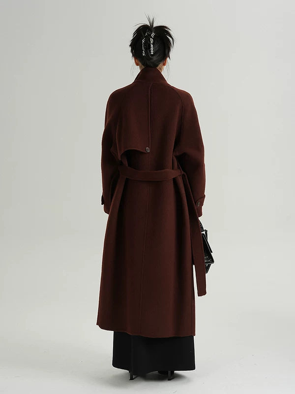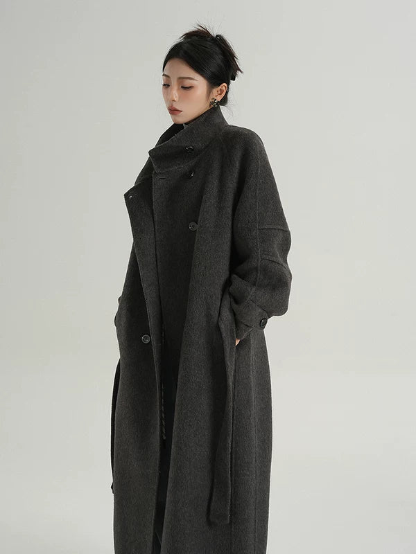 ロングウールスタンドカラー ベルト付きコート