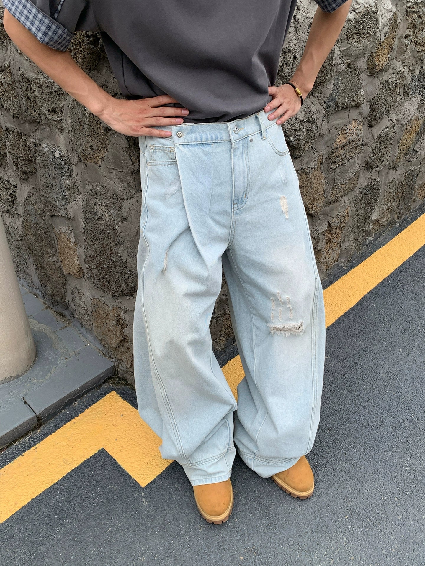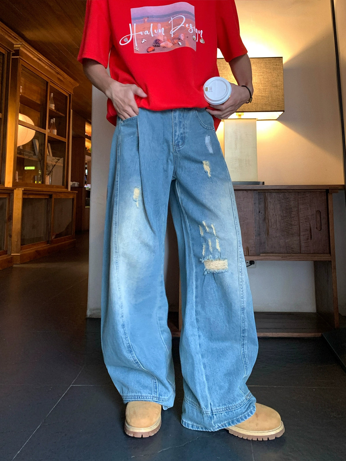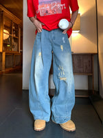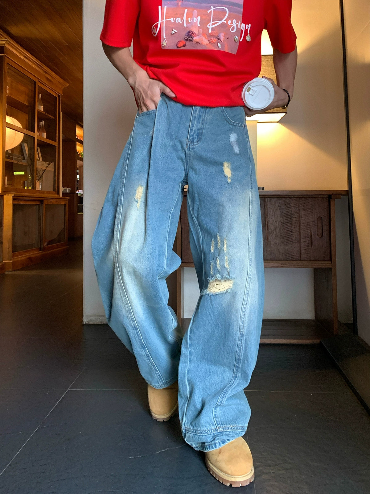 루즈 핏 디스트레스드 워시드 청바지 팬츠