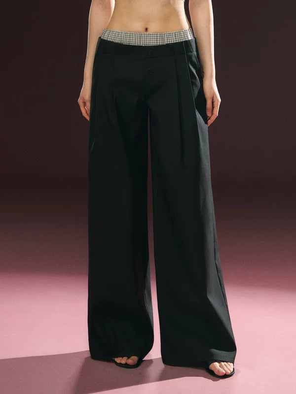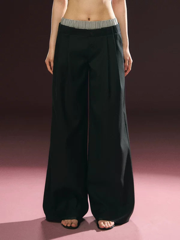 와이드 레그 하이 웨이스트 캐주얼 팬츠