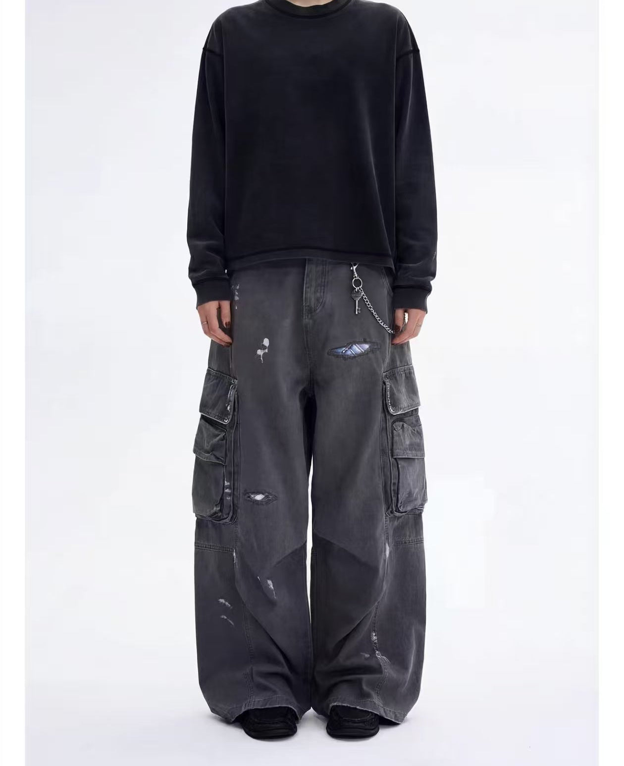 찢어진 패치워크 와이드 레그 카고 팬츠