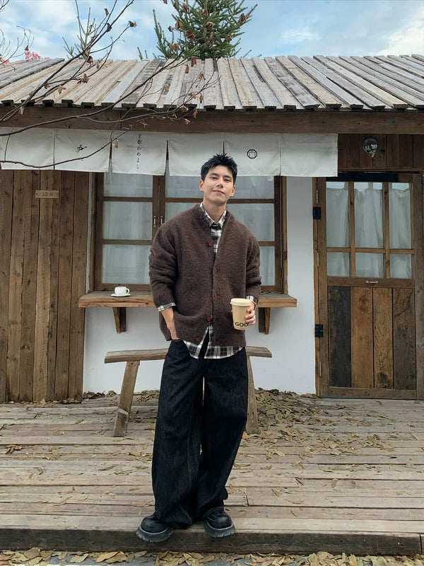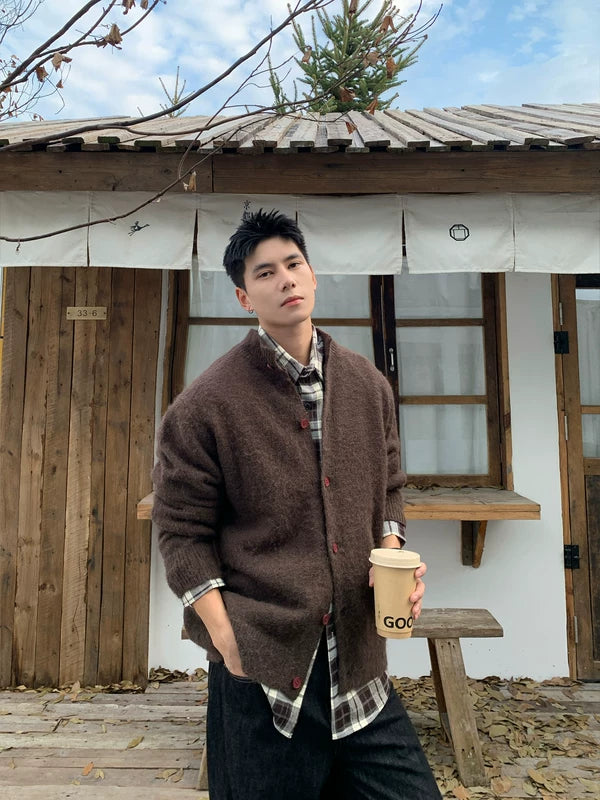 미니멀리스트 니트 버튼 프론트 가디건 스웨터