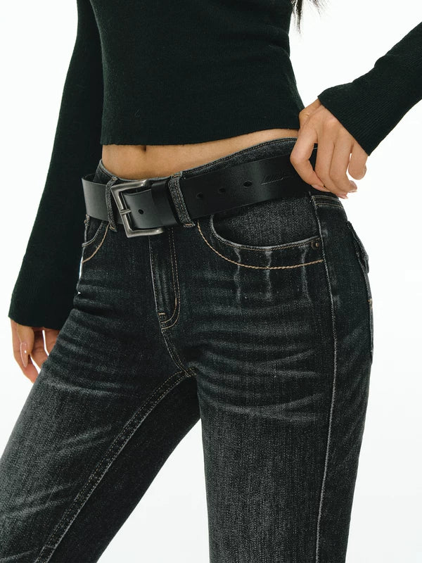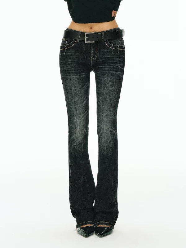 슬림 핏 미드 라이즈 데님 팬츠