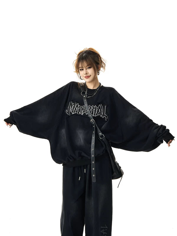 고통받는 자수 그래픽 크루 넥 스웨트셔츠