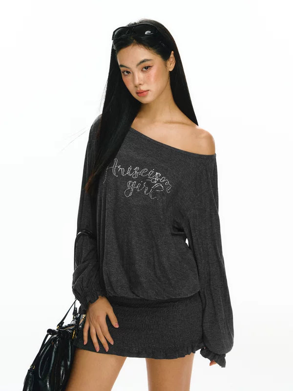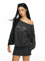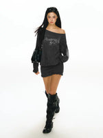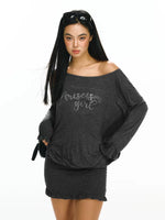 오프 숄더 긴 소매 니트 드레스
