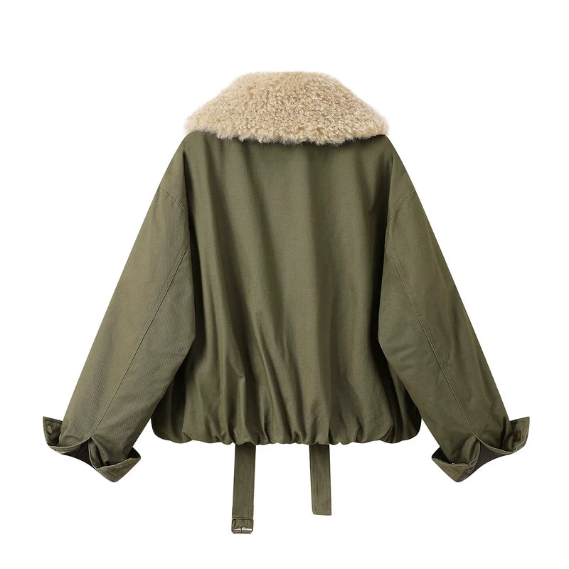 가짜 양털 칼라가 있는 짧은 재킷