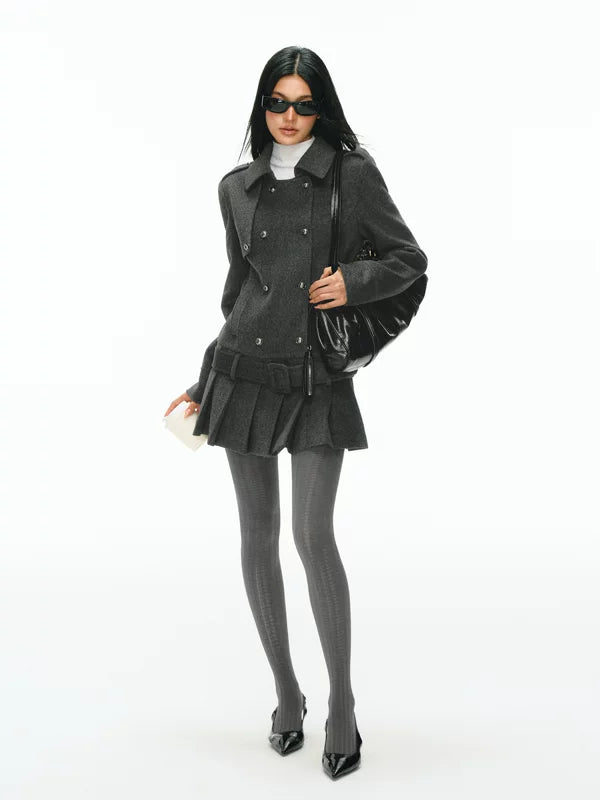 더블 브레스티드 벨트가 있는 주름 코트 드레스