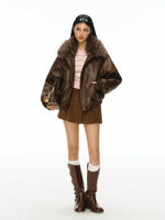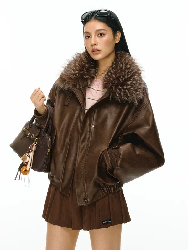 탈부착 가능한 모피 칼라가 있는 인조 가죽 재킷