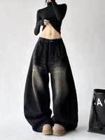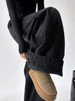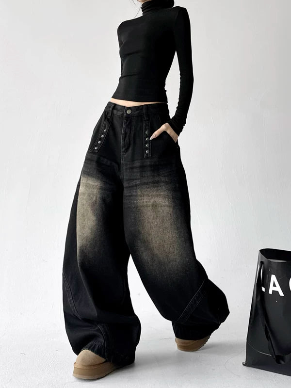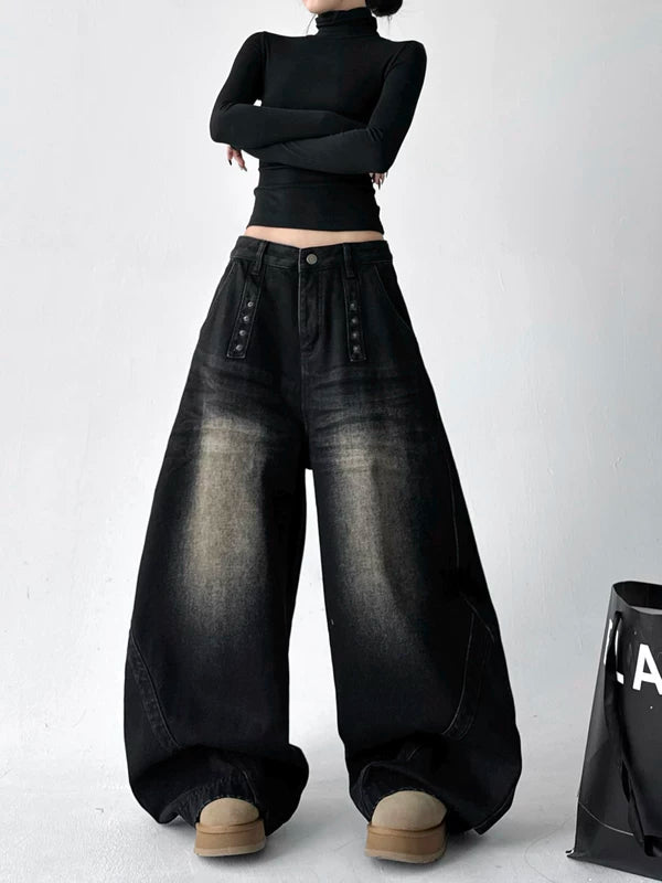 하이 웨이스트 곡선 블레이드 와이드 레그 팬츠