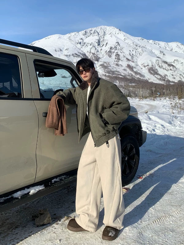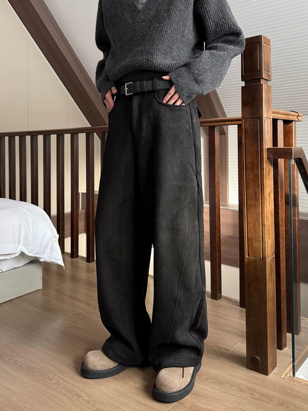 스웨이드 와이드 레그 패치워크 캐주얼 팬츠