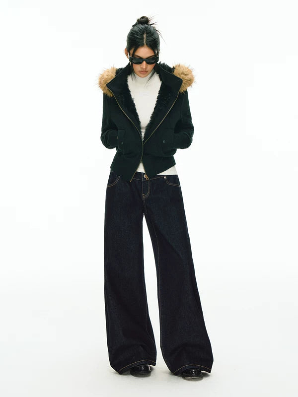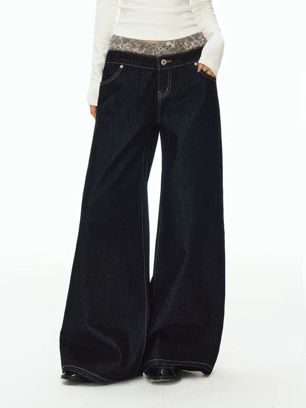 패치워크 허리밴드 와이드 레그 데님 팬츠