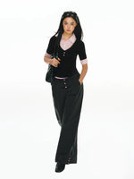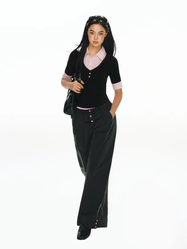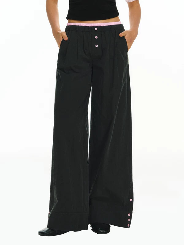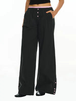 와이드 레그 하이 웨이스트 버튼 디테일 팬츠