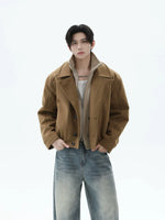 오버사이즈 가짜 양모 짧은 칼라 재킷