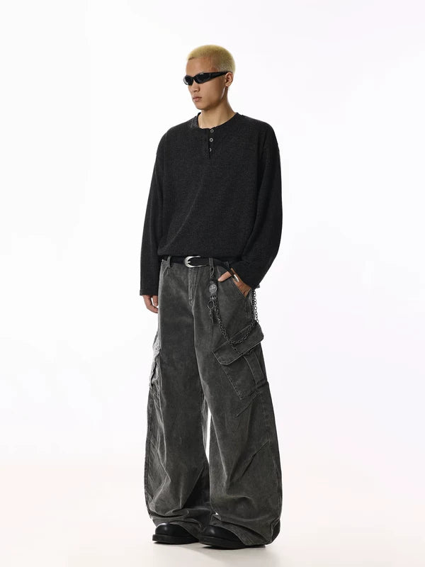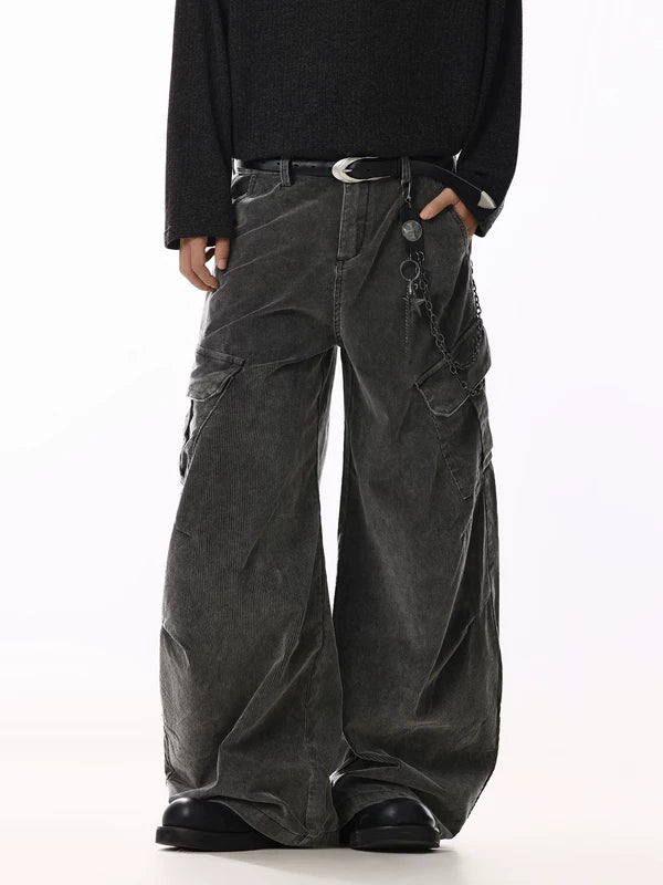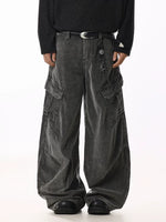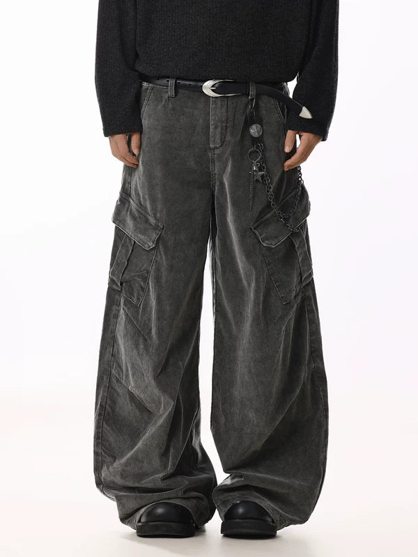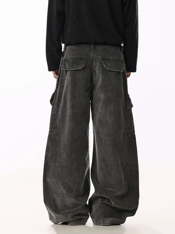 레트로 와이드 레그 곡선 블레이드 카고 팬츠