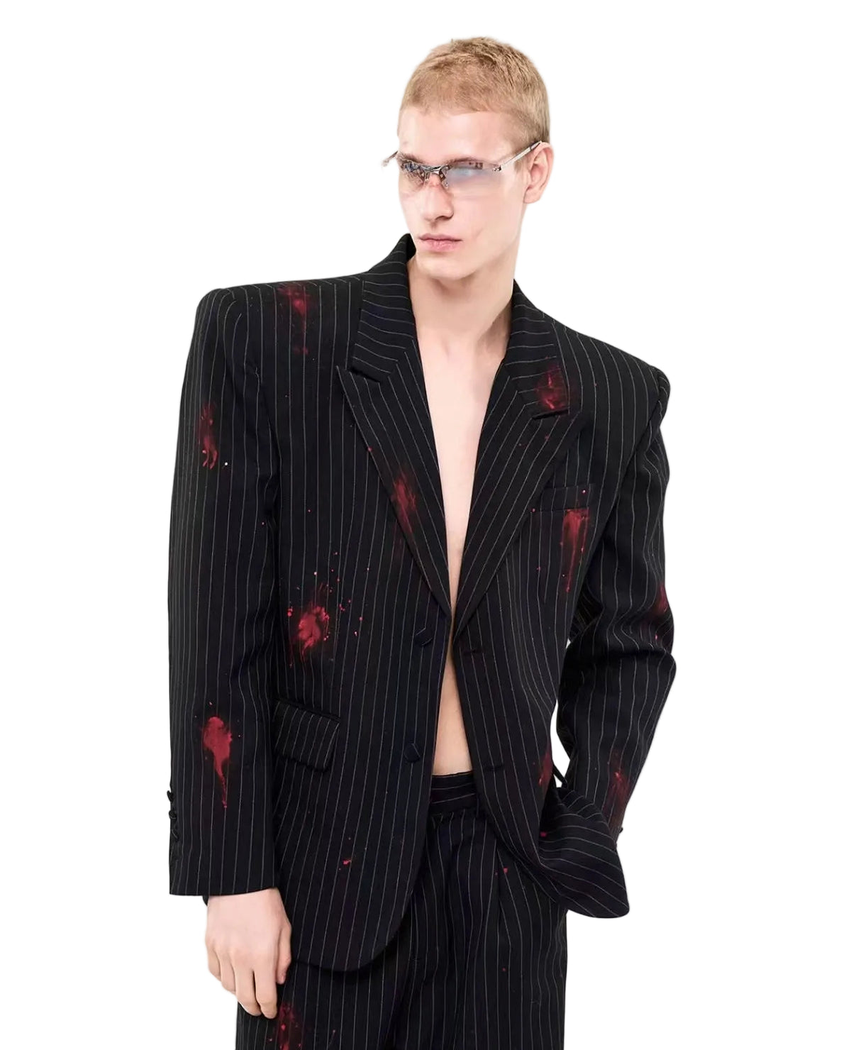 - 손으로 그린 불규칙한 혈액 같은 액체 효과가 있는 줄무늬 패턴