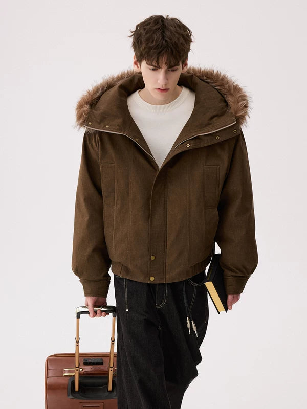 인조 모피가 달린 세탁 가능한 면 후드 재킷