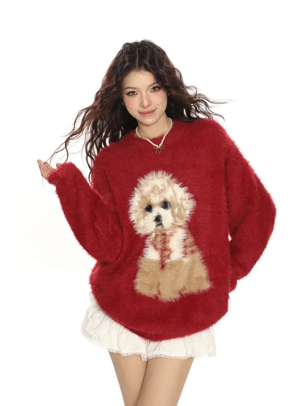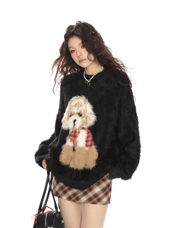 퍼지 퍼피 그래픽 니트 스웨터 탑