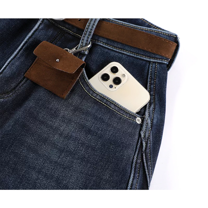 플리스 안감이 있는 하이웨이스트 와이드 레그 청바지