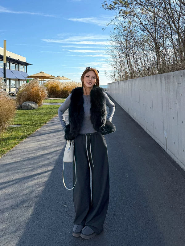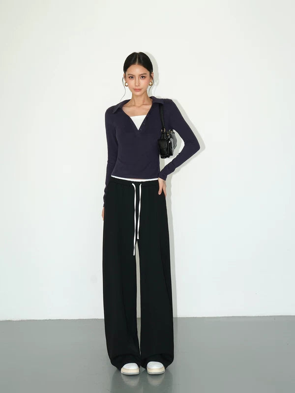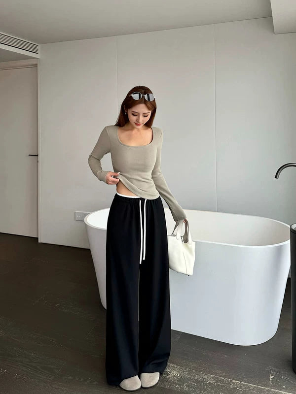 하이웨이스트 와이드 레그 니트 스웨트팬츠